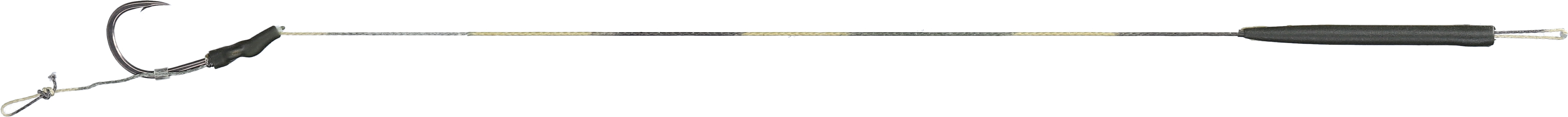 Klasický návazec v profesionální verzi. Vyrobený pomocí pletenky v maskáčovém opletu, se silným širokým háčkem, vyzbrojeným tmavě zeleným rovnátkem, které urychluje zásek doplněný rukávem proti zamotání. Skvělá souprava pro lov všemi technikami.