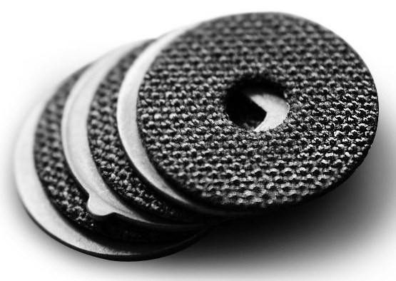 Pro ty, kteří vyžadují extrémní sílu brzdy je možné dokoupit originální karbonové podložky, které je nutné zaměnit v kovové cívce za filcové podložky.