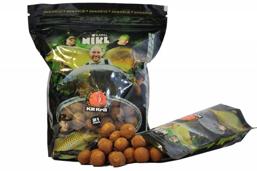 Jak již název napovídá, výjimečnost a zcela přírodní atraktivitu Kill Krillu zajišťují krillové produkty. Hotové boilies obsahuje velké množství exkluzivní krillové moučky, 100% čistou krillovou tekutou potravu, mořšké extrakty a vyladěnou kombinaci esencí, které společně zaručují jedinečnou chuť a vůni hotového boilies.