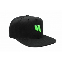 Moderní kšiltovka ve stylu „snapback“ s rovným kšiltem, vyšívaným 3D logem a malou textilní etiketou na boku.