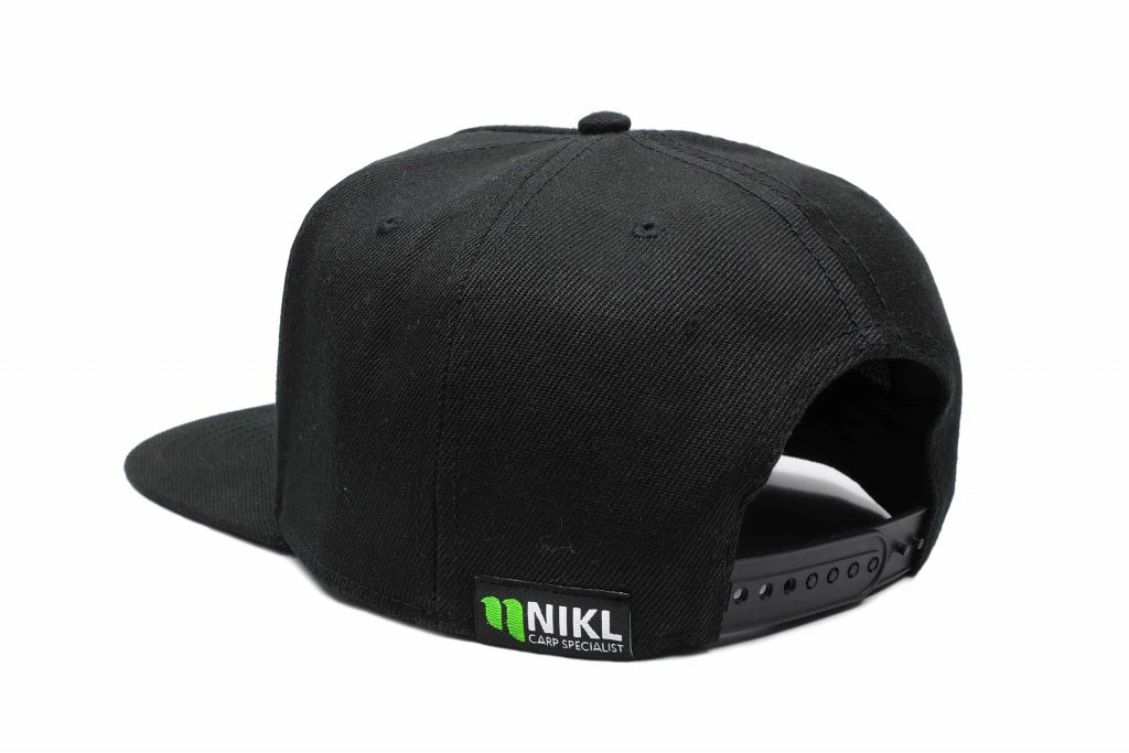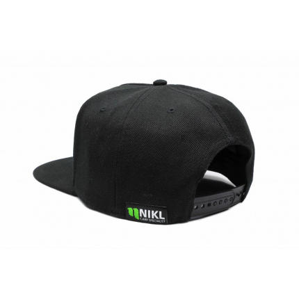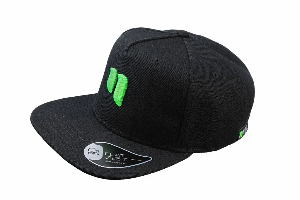 Moderní kšiltovka ve stylu „snapback“ s rovným kšiltem, vyšívaným 3D logem a malou textilní etiketou na boku.