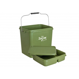 Kbelík o objemu 15 litrů s vaničkou a uzamykatelným víkem, rozdělený na dvě části. Zatímco kbelík pojme velké množství nástrah, pelet, návnad nebo granulovaného materiálu na krmení, odnímatelný zásobník pojme ty nejchytlavější návnady. Doporučujeme těm rybářům, kteří kladou velký důraz na krmení. Výrobce: Carp ZOOM