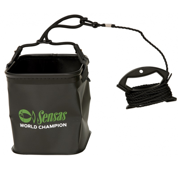 Skladný kbelík s provázkem z odolného EVA materiálu pro nabírání vody na vysokém břehu. Rozměr 16x16x16 cm a délka provázku 500 cm.