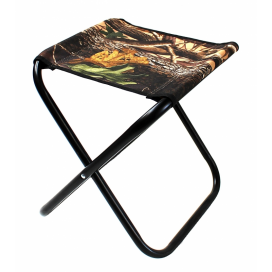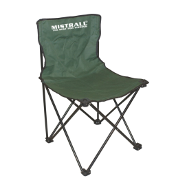 Klasická rybářská stolička s jednoduchou konstrukcí a pevným potahem.