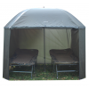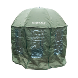 - Rybářský deštník plně zakrytý – bočnice se dají připevnit po celém obvodu deštníku. Můžete se tak krásně zavřít a schovat nejen při špatném počasí, ale i v případě noclehu. Je to vlastně levnější alternativa bivaku.