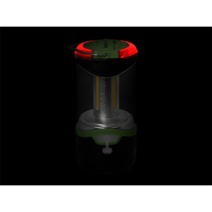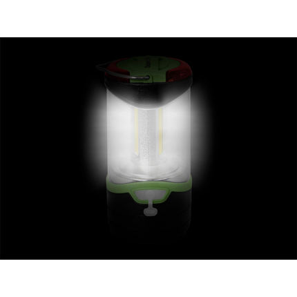 Váží skvělých 261 gramů a díky jejím kompaktním rozměrům ji ve vaší výbavě ani neucítíte. Nabízí 4 režimy svícení: po prvním stisku svítí 100% svítivostí, po druhém stisknutí svítí na 50%, třetím stlačením aktivujete permanentní červené světlo a čtvrtým stisknutím červené světlo bliká. 3 LED panely s bílým světlem a vrchní červené LED diody jsou napájeny vyměnitelnou baterií typu 18650. Lucerna tak dokáže podat výkon 5W se svítivostí 220 lumenů. Baterii lze dobíjet přiloženým USB-C kabelem. Kempinkovou lampu je možné postavit na pevný podklad, nebo zavěsit na kovové očko, které se nachází v horní části. Dobíjecí konektor je chráněn gumovou krytkou.