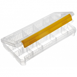 Střední box na nástrahy s velkým fixačním pásem, který se snadno ovládá i za soumraku.