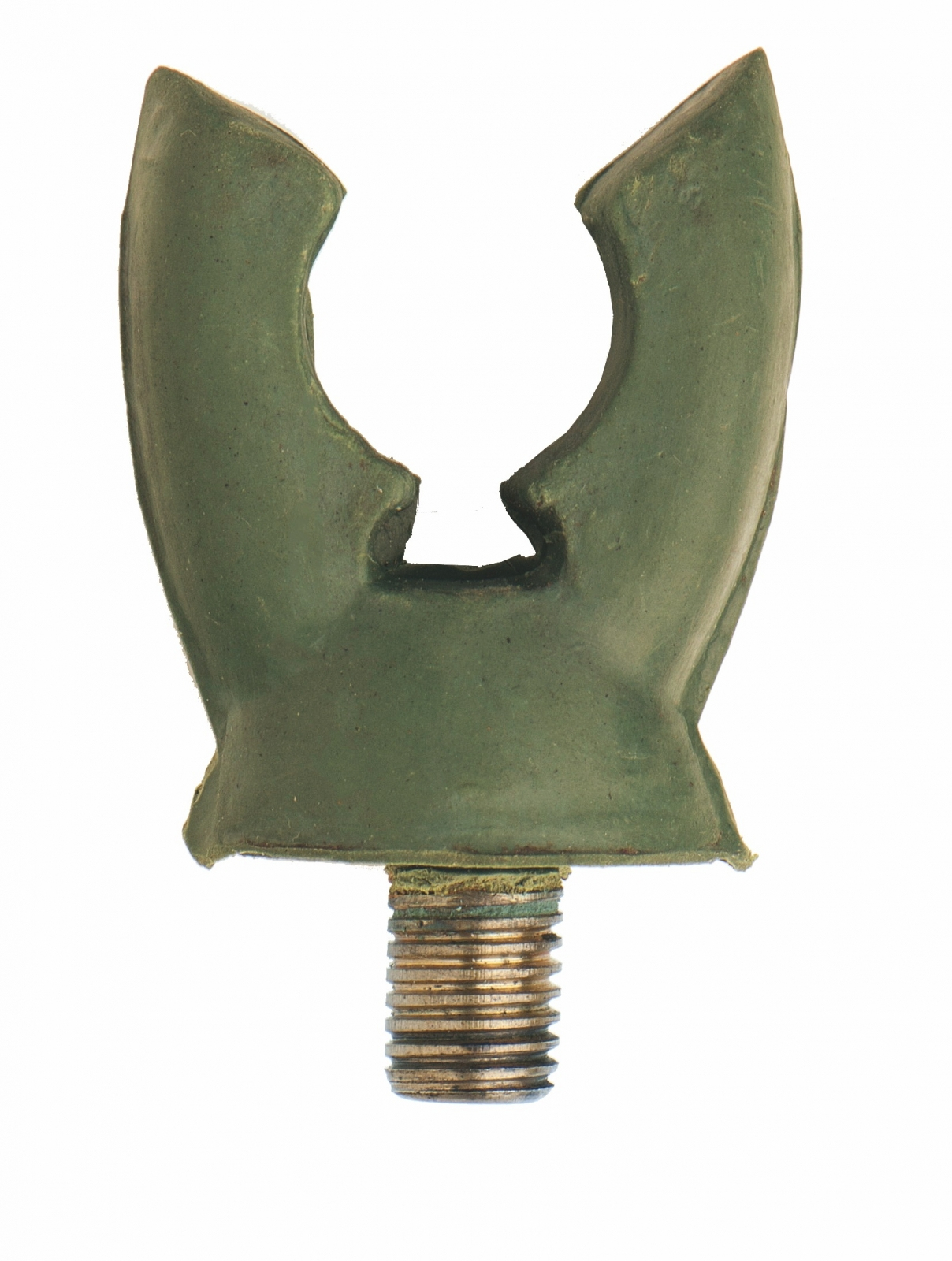 Zadní rohatinka z pružné gumy. Spolehlivě udrží i pruty s velkým průměrem spodního dílu.