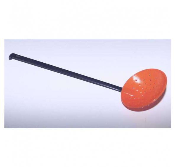 Plastová děrovaná naběračka pro vybírání ledu z vrtaných dírek.