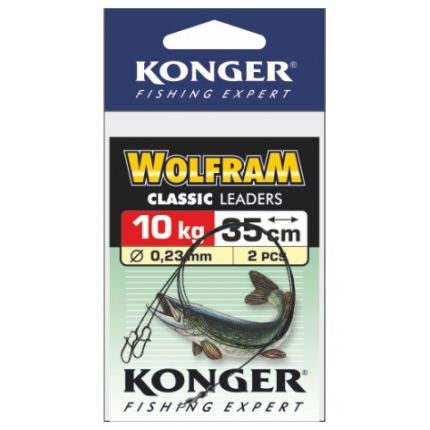 Wolframová lanka jsou velmi jemná a poddajná a při malém průměru vynikají vysokými nosnostmi. Wolframové lanko s pevnostní karabinkou a obratlíkem. Délka: 20 cm Nosnost: 10 kg