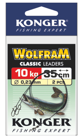 Wolframová lanka jsou velmi jemná a poddajná a při malém průměru vynikají vysokými nosnostmi. Wolframové lanko s pevnostní karabinkou a obratlíkem. Délka: 35 cm Nosnost: 10 kg