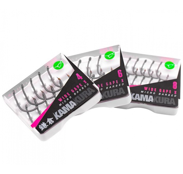 Kamakura Wide Gape X je vylepšenou verzí tohoto klasického vzoru s hrubším drátem, ale s precizním ostřím, jemnějším hrotem než má standardní háček „X“ - je pravděpodobné, že budete muset háček po každé ryběměnit, protože ostří je sice velmi ostré avšak choulostivé.