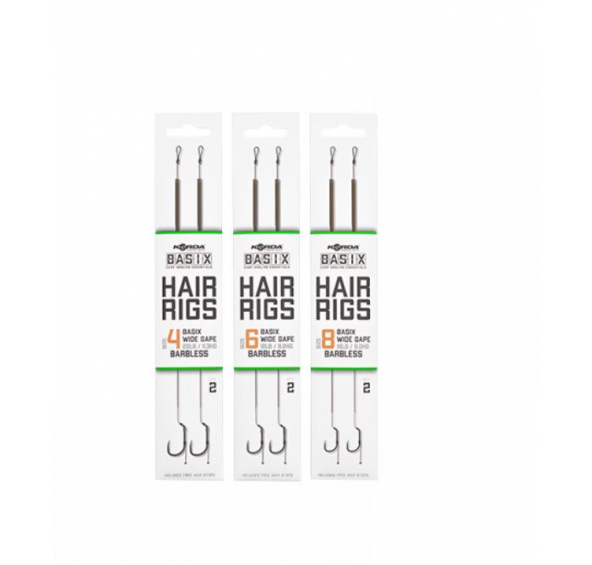 Korda Návazec Basix Hair Rigs Wide Gape Barbless 2ks