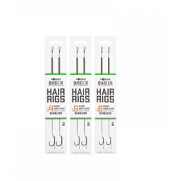 Basix Hair Rigs jsou hotové návazce které stačí jen vytáhnout z balení a jsou připraveny k použití. Vše, co jen musíte udělat, je přidat boilie nebo waftersky, a můžete nahodit! Tyto montáže jsou navázané z nové potahovaní šnůrky v Camo verzi BASIX Coated Hooklink která je stažená před háčkem BASIX Wide Gape, tak aby měl háček volný pohyb a efektivněji se zasekával. Vlas na navléknutí boilie je opatřen kouskem silikonu, který drží boilie na místě a pomáhá předcházet zamotání, délka těchto vlasu byla optimalizována k velikosti nástrah, které odpovídají zvolené velikosti háčku. Velikost 8 je určena pro nástrahy 12 mm, velikost 6 pro 15 mm a velikost 4 pro 18 mm. Každý návazec je dodáván s několika zarážkami a různě velkými zarážkami Extenda, které vám umožní měnit délku vlasů a používat různé kombinace návnad, pro které je návazec určen. Montáž je zakončena smyčkou a opatřena převlekem proti zamotání BASIX, to umožňí rychlé a snadné připevnění k sestavě BASIX Lead Clip Leader nebo BASIX Lead Clip Action Pack (která zahrnuje QC obratlíky). Dodává se v balení po 2 kusech - k dispozici ve velikostech háčků 4, 6 a 8 v provedení s protihrotem nebo bez protihrotu"