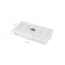 TBX ONE je rada multifunkčných krabičiek určených na uloženie rybárskeho príslušenstva. Vyrobené sú z transparentného plastu, takže máte vždy dokonalý prehľad o uložených veciach vo vnútri krabičky. Rada TXB ONE je vybavená praktickými klipmi z transparentného plastu. Technické parametre: Rozmer: 162x86x35mm Počet pevných priehradiek: 5 Rozmer prie...