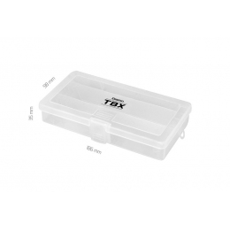 TBX ONE je rada multifunkčných krabičiek určených na uloženie rybárskeho príslušenstva. Vyrobené sú z transparentného plastu, takže máte vždy dokonalý prehľad o uložených veciach vo vnútri krabičky. Rada TXB ONE je vybavená praktickými klipmi z transparentného plastu. Technické parametre: Rozmer: 186x98x35mm Počet pevných priehradiek: 3 Rozmer prie...