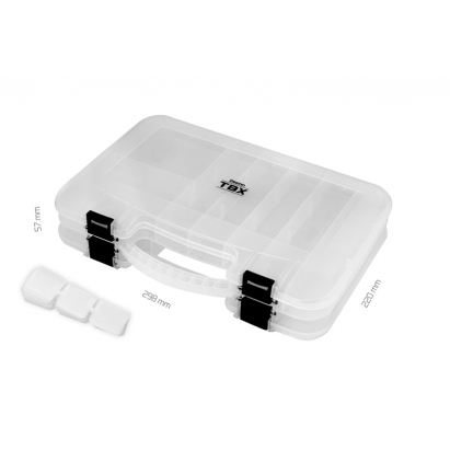 Vyrobená je z transparentného plastu, takže máte vždy prehľad o uložených veciach vo vnútri krabičky. Vybavená je praktickými externými klipmi z plastu. Technické parametre: Rozmer: 275x185x45mm Počet pevných priehradiek: 5 Rozmer priehradky: 1x(11,5x16,2x3,5cm), 4x(15x4x3,5cm) Počet vkladateľných priečinkov: 10