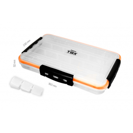 TBX ONE Clip WP je rada multifunkčných krabičiek určených na uloženie rybárskeho príslušenstva. Vyrobená je z transparentného plastu, takže máte vždy prehľad o uložených veciach vo vnútri krabičky. Vybavená je praktickými externými klipmi z plastu a tesnením oranžovej farby. Technické parametre: Rozmer: 360x230x50mm Počet pevných priehradiek: 4 Roz...