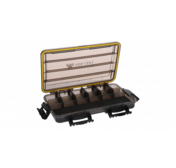 Jednostranné, 100% vodotěsné, černé rybářské krabičky s těsněními. Dolní oddíly byly vybaveny speciálně vyříznutou pěnou. Mají také klasické nastavitelné přihrádky bez pěny pro uložení nejrůznějších nástrah.