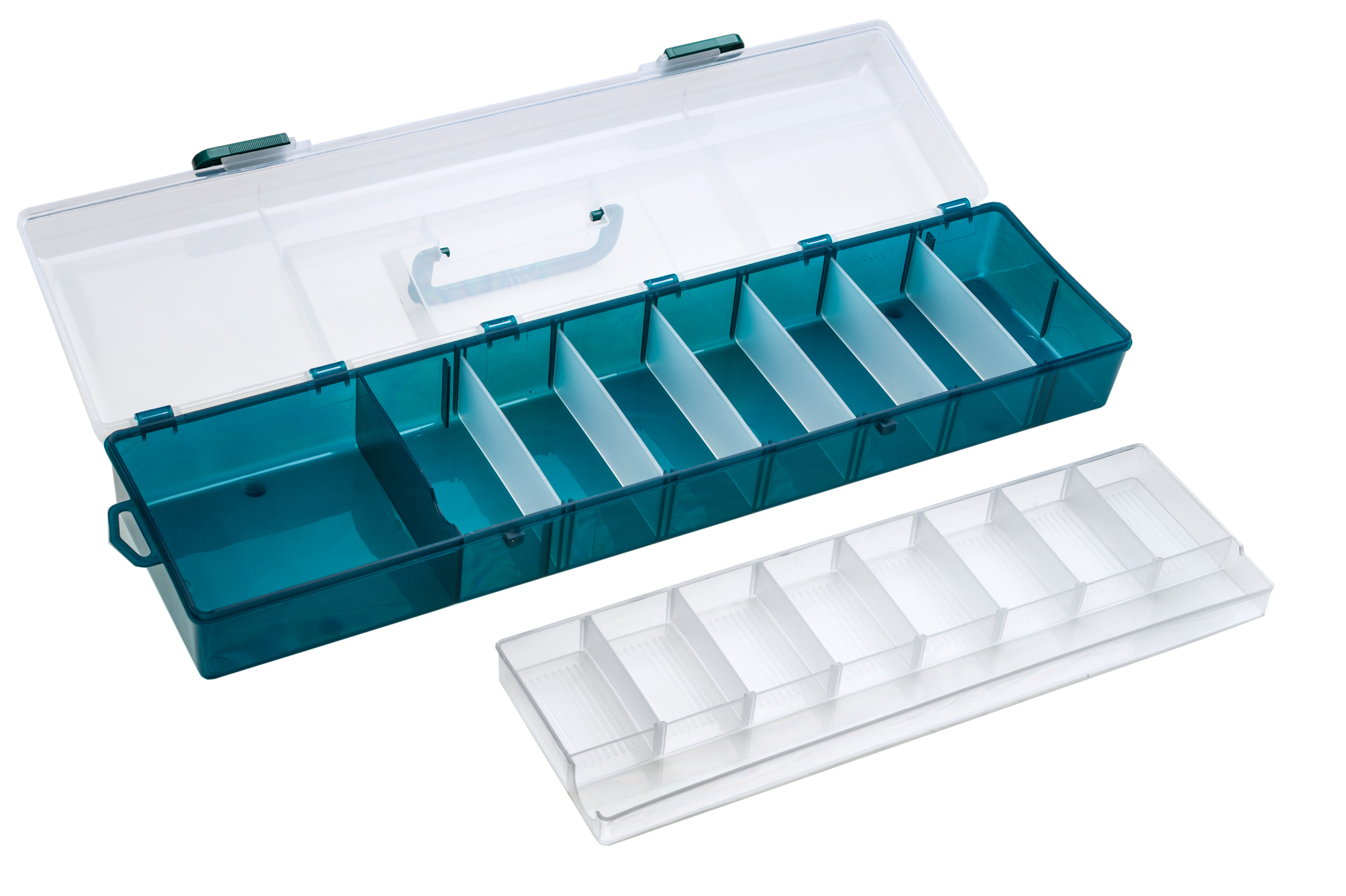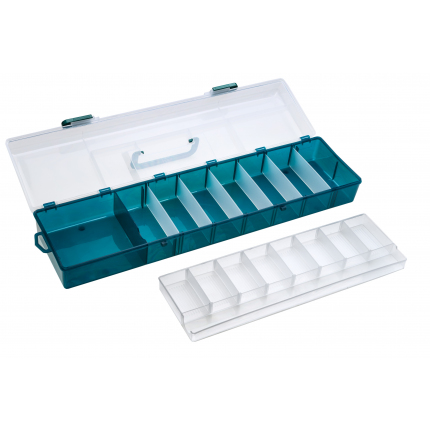 Nabídka plastových krabiček a kufříků představuje ucelený sortiment osvědčených a stále žádaných modelů. Zajímavé jsou dvou a třípatrové kufříky, vyrobené z vysoce odolného plastu. V zavřeném stavu udrží stojícího dospělého člověka. Za vynikající ceny vám nabízíme i krabičky na drobné příslušenství, háčky, umělé mušky atd. Řada modelů z naší nabídky krabiček přináší drobné inovace oproti běžně nabízeným typům na trhu. Tyto drobné úpravy jsou vedeny snahou maximálně přizpůsobit i toto základní příslušenství praktickým požadavkům rybářů. Všechny krabičky jsou vyrobeny z plastové hmoty s příměsí silikonu. Umožňují proto bezproblémové přechovávání agresivních gumových twisterů a podobných nástrah.
