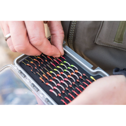 Odolná muškařská krabička s ultra pevným uzavíráním, s černou silikonovou pěnou a transparentním víkem nabízí bezpečnou volbu pro vaše mušky....