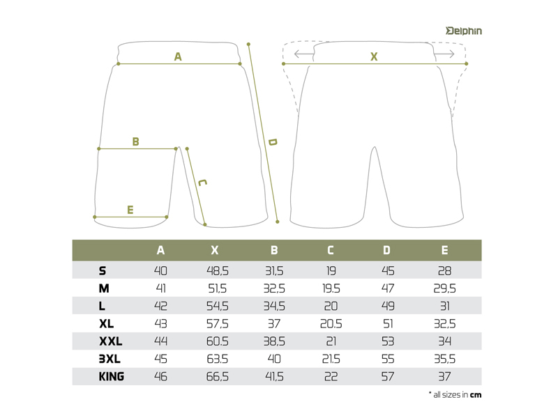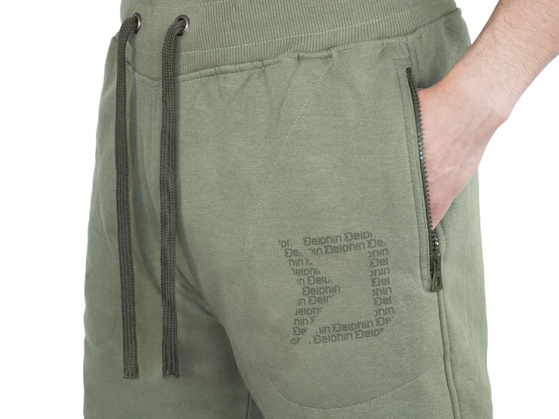 Jsou vyrobeny z tkaniny zelené barvy, která je pružná a příjemná na dotek, díky čemuž se velmi dobře nosí. Na pase jsou vybaveny elastickou gumičkou a také širokou šňůrkou umožňující přizpůsobení šířky pasu dle Vašich potřeb. Na obou stranách najdete dostatečně rozměrné kapsy na zip a v zadní části také jednu menší kapsu na suchý zip. Důkladně promyšlený design LOGOS se skládá z menších nápisů Delphin vytvářejících zajímavou mozaiku ve tvaru našeho D loga.