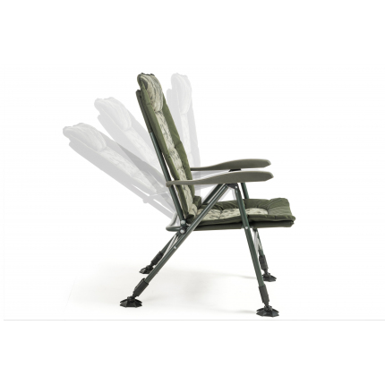 Rybářské křeslo od firmy Mivardi s označením Camo Code Quattro nabízí oblíbený a naprosto spolehlivý systém sklápění opěradla při nadzdvihnutí opěrek rukou. Konstrukce křesla je postavena na lehkém a pevném hliníkovém rámu s vysokou nosností až 160 kg. Křeslo je vybaveno nově navrženými patkami proti zaboření a novými zámky aretace nohou v unikátním designu Mivardi. Čtyři samovýsuvné teleskopické nohy lze ovládat jednoduchým stisknutím páčky aretace.