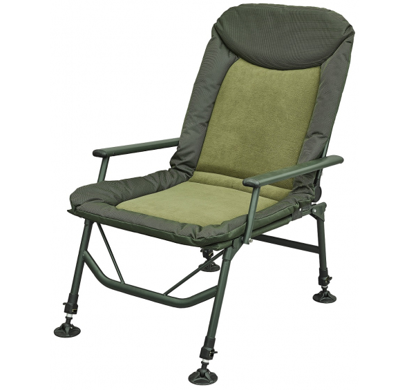 Speciální aluminiová konstrukce se vyznačuje vysokou pevností a lehkostí. Bohatě polstrovaná matrace je vyrobena z extrémně pohodlné ergonomicky tvarované tkaniny (nylon 600D) v kombinaci s hřejivým polar fleecem. Dokonalá izolace chrání tělo před chladem od země. Povrchová úprava zaručuje dlouhou životnost a snadnou omyvatelnost. Nastavitelné nohy s širokými patkami proti zapadání zabezpečují pohodlnou možnost umístění v nerovném terénu. Široké opěrky na ruce přispívají k ještě většímu komfortu při sezení. Na zadní straně opěradla je kapsa na zip pro uložení drobností (29x26x3 cm). Na horní straně opěradla je integrované zesílené polstrování jako opěrka hlavy. Polohu opěradla je možné nastavit díky pevnému kloubu.