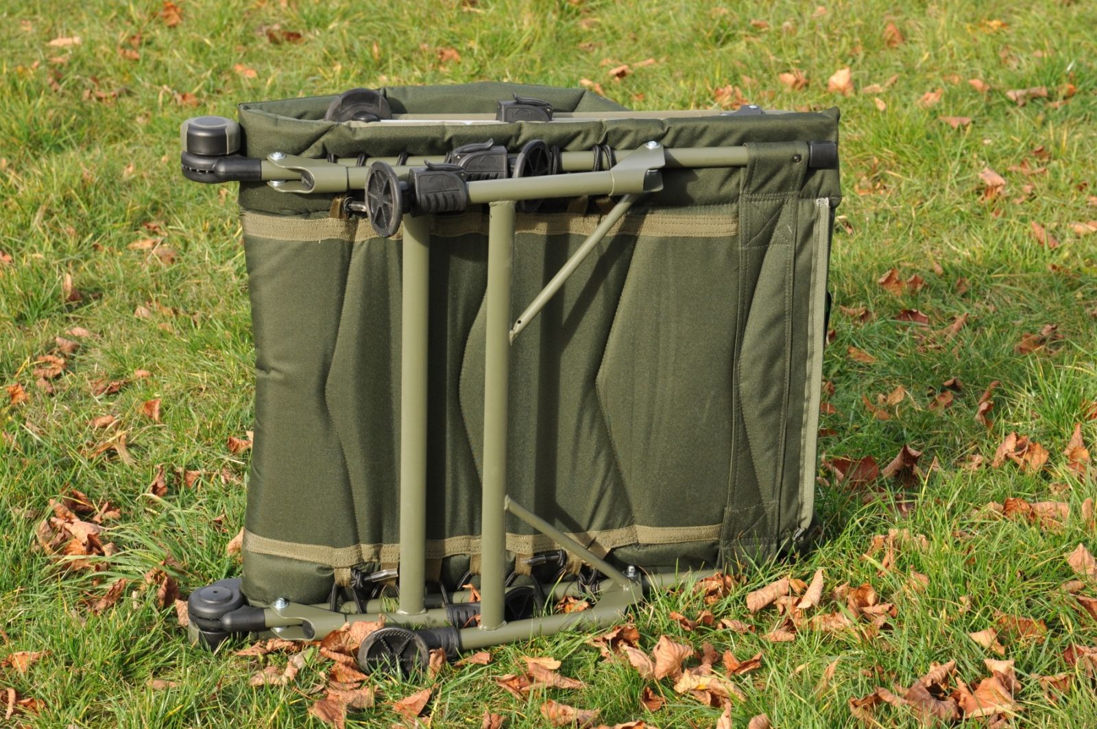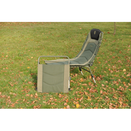 Unikátní kombinace luxusního křesla typu „recliner“ a lehátka s vysokou stabilitou a nízkou hmotností. Vše je vyrobeno z materiálů shodných s nejvyššími modely lehátek. Matrace je z materiálu „M850 soft-touch“, který je nepřekonatelný ve snadnosti údržby a svými výbornými izolačními schopnostmi. Přední část je ke křeslu připojena pomocí zámků z pevnostního plastu a jištěna silným kovovým zipem. Všech 6 nohou celého kompletu je teleskopických a doplněných širokými výkyvnými patkami proti zaboření....