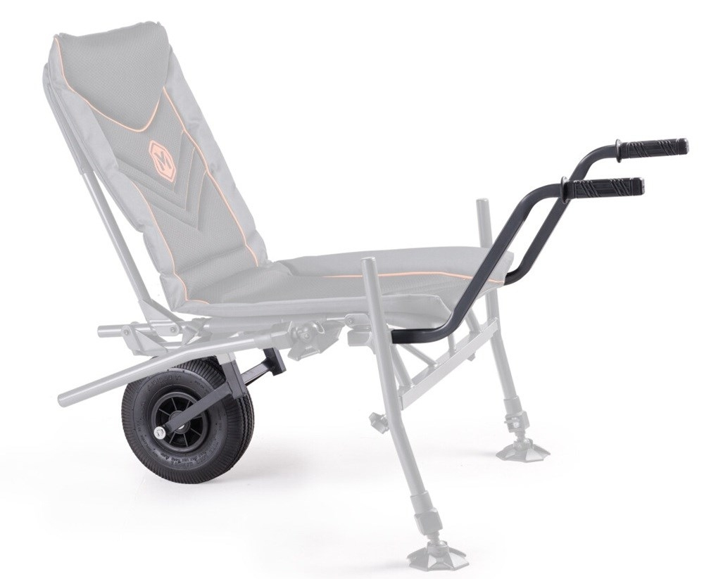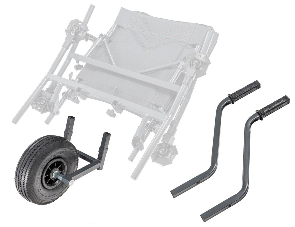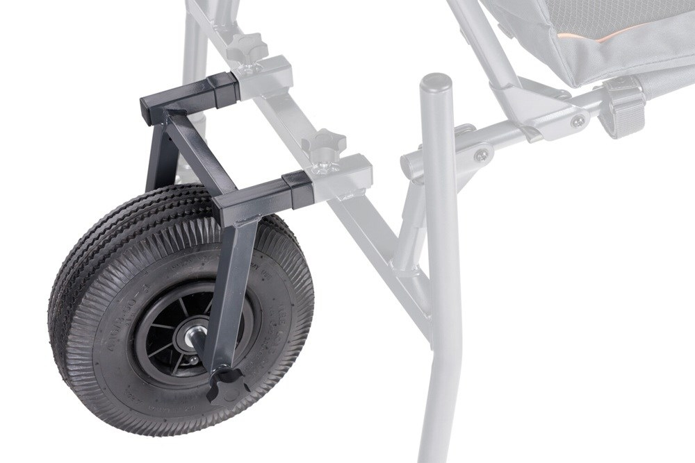 Přepravní systém pro křeslo TMX feeder. Je tvořeno dvojicí rukojetí a kolem osazeným na pevném rámu kompaktních rozměrů. Celý systém lze na křeslo upevnit během několika vteřin a tím vytvořit transportní vozík s velkou kapacitou. Parametry: Hmotnost: 3,1 kg Obsah balení: kolečko + řidítka...