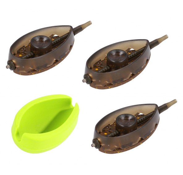 Evoluce krmítek method feeder Aperio. Q.M.F. Jde o rychlý a snadný způsob, jak vyměnit krmítko, aniž by bylo nutné předělat celou sestavu. Stačí odstranit gumové pouzdro, vysunout krmítko z vřetena a nahradit jej jinou gramáží.