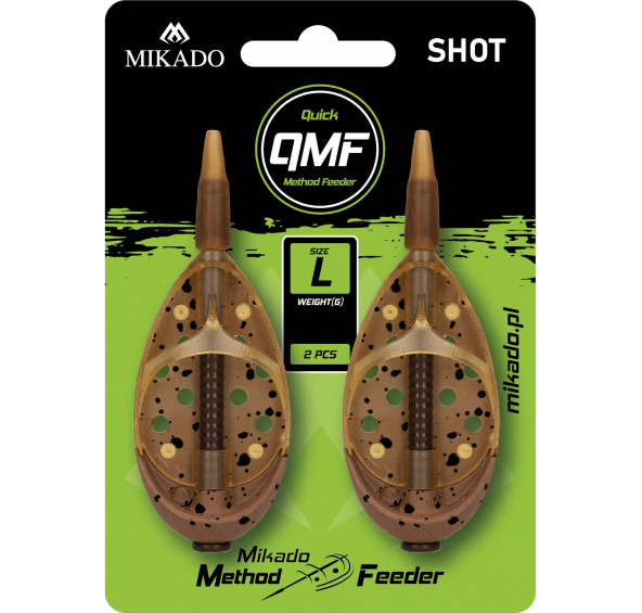 Shot Method Feeder je revoluční konstrukce mezi Method Feeder krmítky. Jedinečný tvar předního závaží jej činí stabilním za letu, což mu umožňuje dosáhnout extrémních vzdáleností. Je vybaven systémem rychlé výměny QMF.