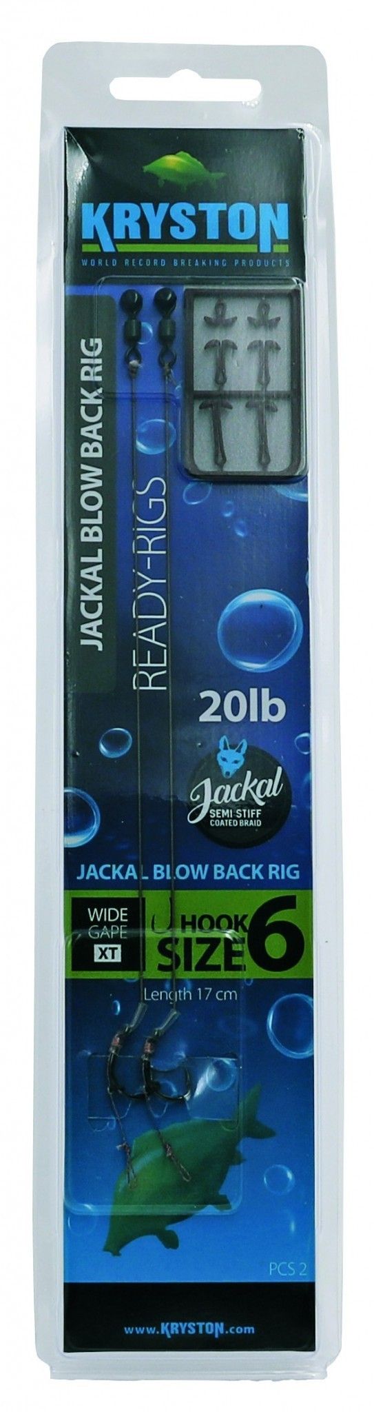 Jackal Blow back rig je univerzální návazec pro nástrahy na dno nebo neutrálně vyvážené. Je na něj použit japonský Wide Gape XT háček a 17cm dlouhý potahovaný Jackal, který je velmi odolný a zároveň díky své tuhosti výrazně snižuje riziko zamotání. Vlasový přívěs je na stažené jemné šňůrce připevněné přes O kroužek. Balení kromě 2ks návazců obsahuje i 3x 2ks různě dlouhých prodlužovacích vlasových zarážek. Hotové návazce Kryston jsou z prvotřídních komponentů, špičkových japonských háčků a zejména legendárních Kryston šňůrek a fluorocarbonů.