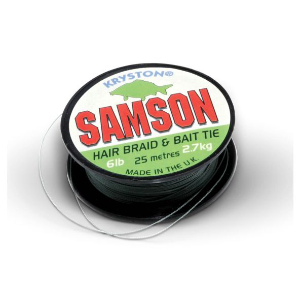 Samson je extra jemná šňůrka s nízkou nosností. Není primárně určena k vázání návazců. Použijte ji na krátké "vlasy" pod háček, specifické způsoby nastražení, přivázání pop-up, atd...