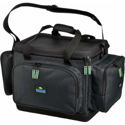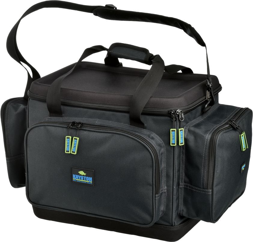 Kryston Carrier bag je univerzální středně velká taška, která pojme velkou část vaší výbavy. Je specifická tím, že vrchní část je dokonale vyztužena, takže lze používat jako bivy stolek. Podobným způsobem je zpevněno i dno, což zvyšuje celkovou pevnost tašky. Na bocích jsou dvě velké boční kapsy, ve předu jedna ještě větší, která má uvnitř flexibilní kapsy. Uvnitř hlavní části jsou přepážky umožňující oddělit jednotlivé části výbavy. Pod víkem je též síťová kapsa na zip. Taška má pevné uši na přenášení, stejně tak i polstrovaný popruh na rameno. Je ve stylové černé barvě s vnitřními modrými lemy. Robustní voděodolný materiál a silné kvalitní zipy s logem Kryston jsou samozřejmostí. Rozměry: 56x36x32 cm Obsah_ 35 litrů