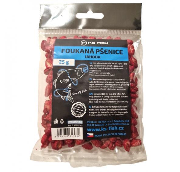 Popis produktu KS Fish foukaná pšenice 25g jahoda