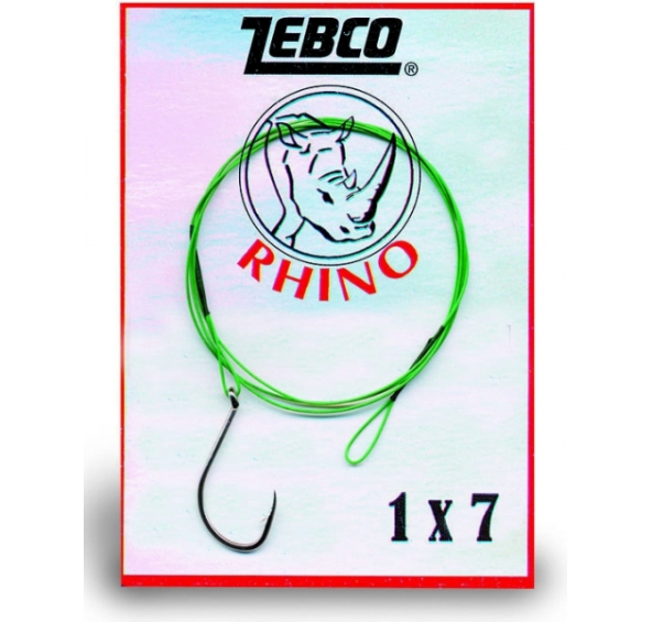 lanko oceľové rhino steel traces, ukončenie jednoháčik+slučka, vlákna 1x7, háčik veľkosť 2, priemer 0,27mm, nosnosť 8kg, dĺžka 0,6m