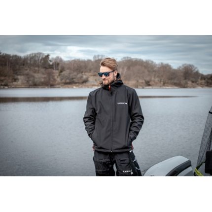 Softshellová bunda se dvěma vnějšími kapsami, dvěma vnitřními kapsami, přepracovaným plastovým zipem, gumovým tahákem zipu s logem Leech, manžetou na rukávu z elastické polyesterové tkaniny, stahováním v pase a kapucí. Vyšívané logo Leech na prsou.