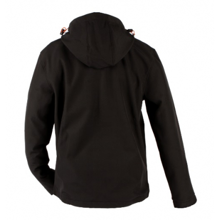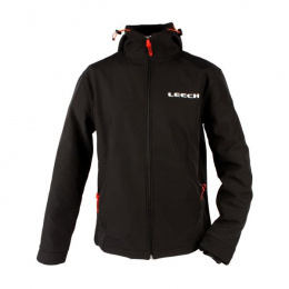 Softshellová bunda se dvěma vnějšími kapsami, dvěma vnitřními kapsami, přepracovaným plastovým zipem, gumovým tahákem zipu s logem Leech, manžetou na rukávu z elastické polyesterové tkaniny, stahováním v pase a kapucí. Vyšívané logo Leech na prsou.