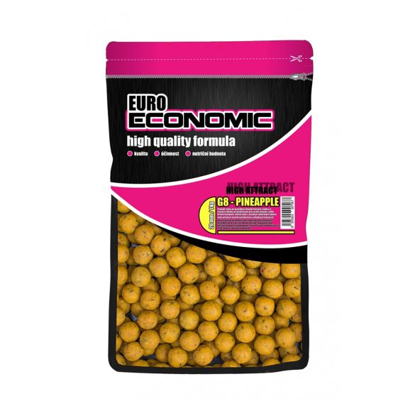 Boilies Sladký Ananas je velmi atraktivní boilies. Ideální podkladové krmení pro boilie Ledová Vanilka. Boilie Sladký Ananas doporučujeme před lovem pořádně zalít boosterm Sladký Ananas (Můžete i několik dní předem). Sladký ananas obsahuje Enzym bromelin a obsah organických kyselin, které podporují trávení. Boilies obsahuje rovněž stopové množství kyseliny máselné. Ideální boilies pro studenou vodu. V minulých letech jsme ke vší spokojenosti vyprodukovali několik tun boilie Euro Economic za hranice České republiky. Velký zájem o boilie Euro Economic nás dovedl ke spolupráci se světově známými velkovýrobci prvotřídních produktů, s kterým jsme sjednotili odběry kvalitních surovin, abychom maximálně snížili náklady. Díky naší kooperaci a moderní technologické lince dnes firma LK Baits produkuje "krmné"-nutričně bohaté boilies za velmi příznivou cenu!