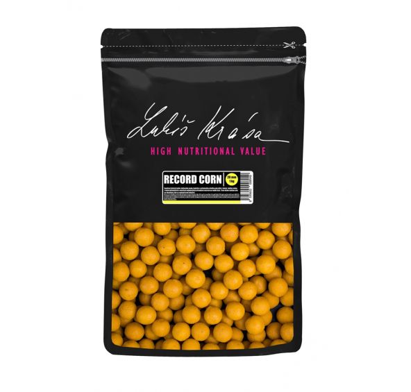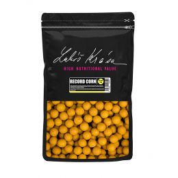 Kukuřice je bezpochyby nejpoužívanější návnadou po celém světě a neexistuje snad ryba, která by se s touto pochutinou nesetkala a nepovažovala ji za přirozenou potravu. Tým LK Baits dlouhá léta pracoval na technologii a způsobu, jak vyzískat ty nejlepší látky z kukuřice a použít je s úspěchem do boilies. Vlastní ojedinělou výrobní technologií získáváme z mladé mléčné kukuřice to nejlepší a vše umocňujeme nektary, které společně s kukuřičnými extrakty tvoří tzv. více než přirozené sousto! Za poměrně krátkou dobu testování si náš kukuřičný boilies získal renomé po celém světě a to ještě dříve než se spustila oficiální distribuce. Vždyť se během pár měsíců na tento zlatý klenot podařilo nachytat neskutečné množství trofejních kaprů a amurů, včetně oficiálního světového rekordu kapra s váhou 47,8 kg! Dovolujeme si tvrdit, že tento boilies bude patřit mezi nejúspěšnější nástrahy na kapry a amury a zapíše se do historie kaprařiny. Totiž, žádné jiné boilies nezaznamenalo tolik úspěchů, v tak krátkém časovém horizontu jako WORLD RECORD CORN. Boilies dále obsahuje mléčné a vaječné bílkoviny, výtažek z kukuřice cukrové, kyselinu – linolénovou a arachidonovou, kukuřičný olej, pryskyřičné látky, vitamíny a jiné.