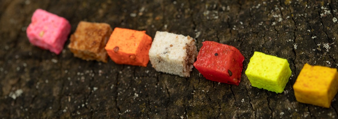 U kořeněných bází bylo použito přírodní koření a přírodní silice, které si sami destilujeme. Specialitou je určitě náš kmínový chléb, který má úžasné vlastnosti, které u pečiva při rybaření postrádáte.