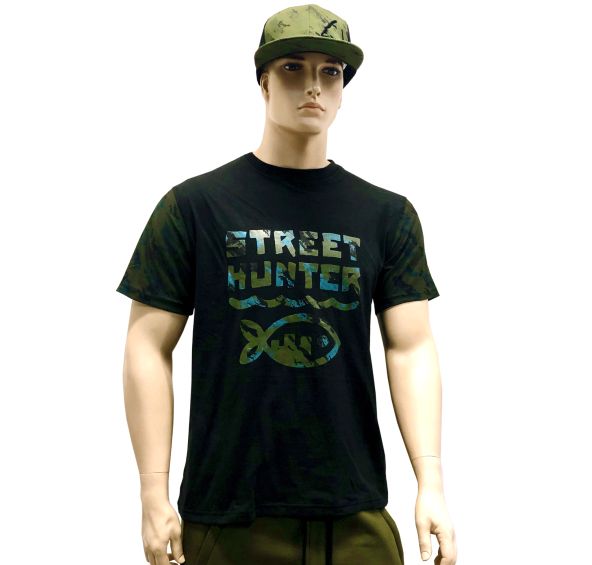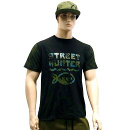 Triko Triko značky LK baits z nové kolekce Street hunter. 100% bavlněné triko černé barvy s krátkým rukávem a kulatým výstřihem. Je zajímavé svým originálním designem s maskáčovými rukávy. Na zádech je motiv kapří hlavy a slogan firmy LK Baits: „spojení s velkými kapry“ a logo LK Baits na prsou. Triko je vhodné na každodenní nošení. Zaručuje pohodlí v každé situaci. barva: černá a camo Materiál: 100 % bavlna Barva: černá a camo logo