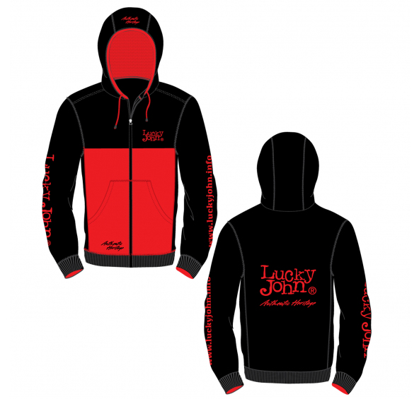 Mikina s kapucí a pohodlným střihem doplněná logem Lucky John. Materiál: 20% bavlna, 80% polyester