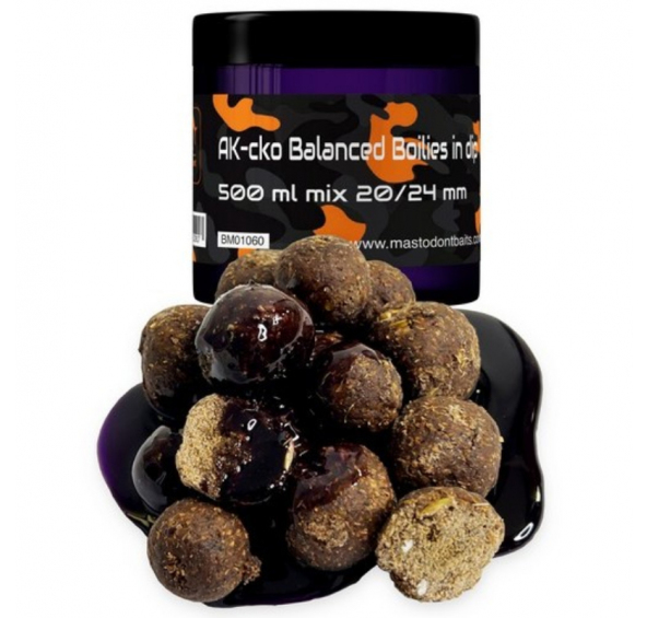 Popis produktu Mastodont Baits AK-cko Balanced Boilies in dip 500ml mix 20/24mm