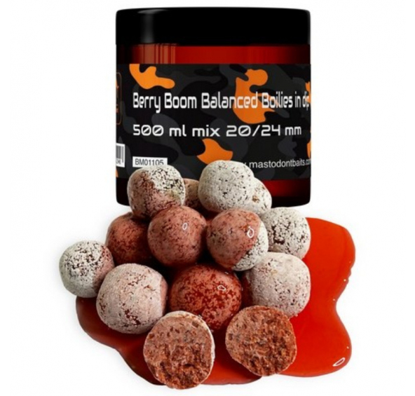 Popis produktu Mastodont Baits Berry Boom Balanced Boilies in dip 500ml mix 20/24mm