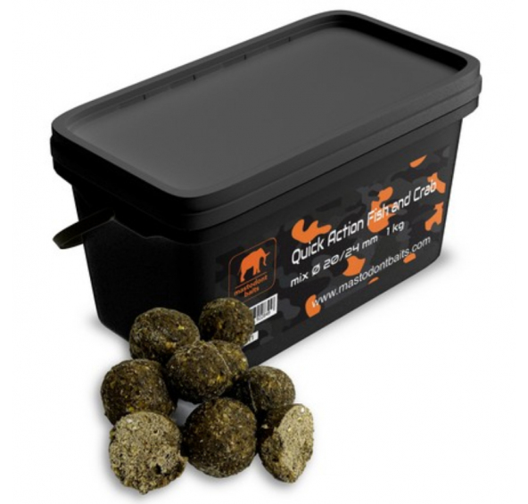 Popis produktu Mastodont Baits Boilies quick action Fish and Crab mix 1 kg 20/24 mm