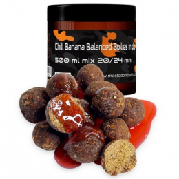 Popis produktu Mastodont Baits Chill Banana Balanced Boilies in dip 500ml mix 20/24mm