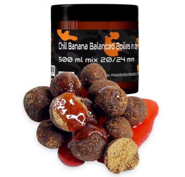 Popis produktu Mastodont Baits Chill Banana Balanced Boilies in dip 500ml mix 20/24mm