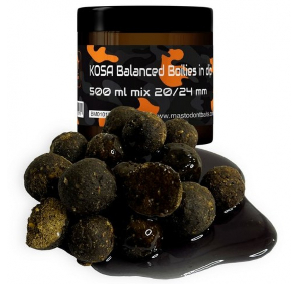 Popis produktu Mastodont Baits KOSA Balanced Boilies in dip 500ml mix 20/24mm